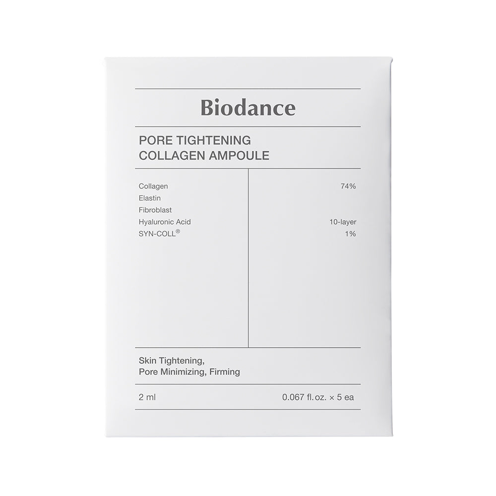 Achieve visibly smoother, tighter, and more youthful-looking skin with BIODANCE Pore Tightening Collagen Ampoule. This high-performance formula combines collagen extract with triple elastin complex (elastin, hydrolyzed elastin, soluble elastin) to improve skin elasticity, reduce sagging, and refine texture.