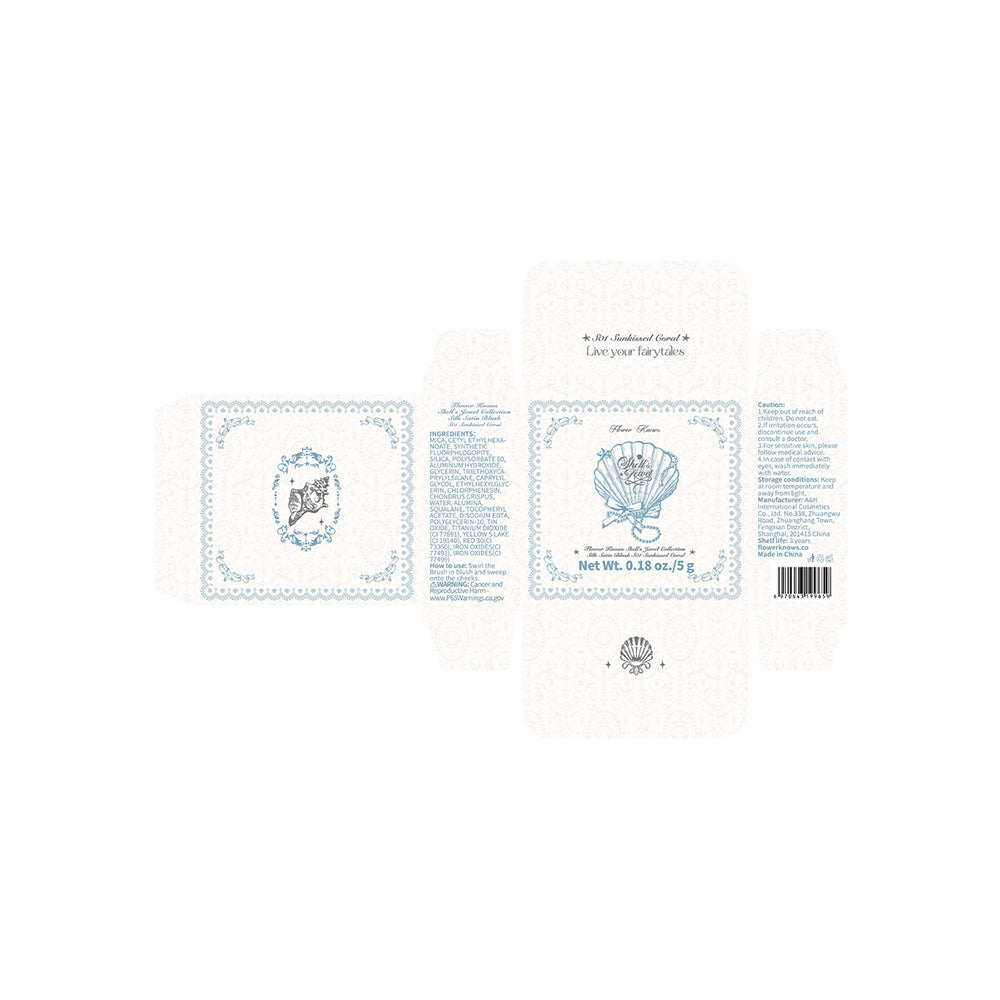Flower Knows Shell's Jewel Collection Silk Satin Blush S01 Sunkissed Coral delivers a radiant coral flush inspired by sunlit coastal warmth. The finely milled powder glides smoothly across the skin, offering silky blendability and buildable pigmentation that enhances cheeks with a soft satin sheen. Its lightweight texture ensures even color distribution without patchiness.