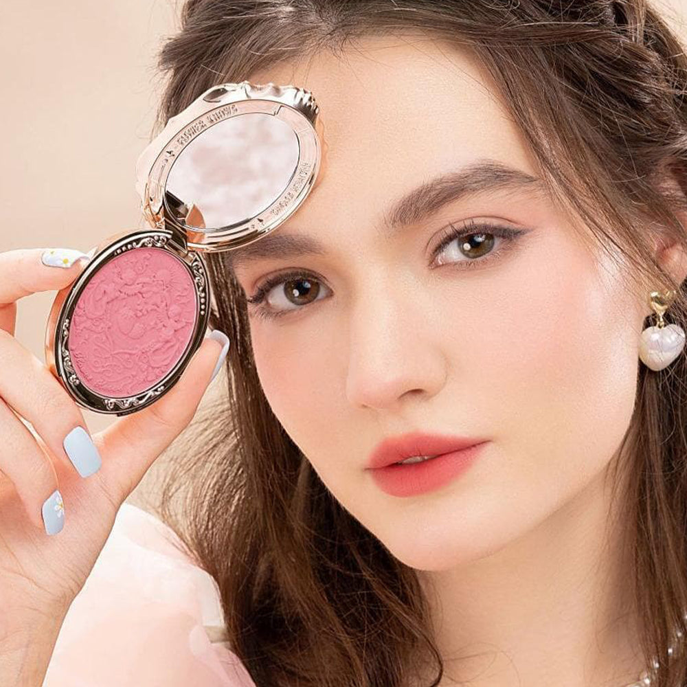 Add a touch of royal charm to your cheeks with the Flower Knows Strawberry Rococo Series Embossed Blush – 05 Berry Mary. This richly pigmented blush features a berry-pink hue that blends effortlessly to deliver a natural flush or buildable intensity, perfect for both everyday wear and glamorous looks. Its formula, infused with Dimethicone and Caprylic/Capric Triglyceride, provides a silky-smooth texture that glides on seamlessly without patchiness.