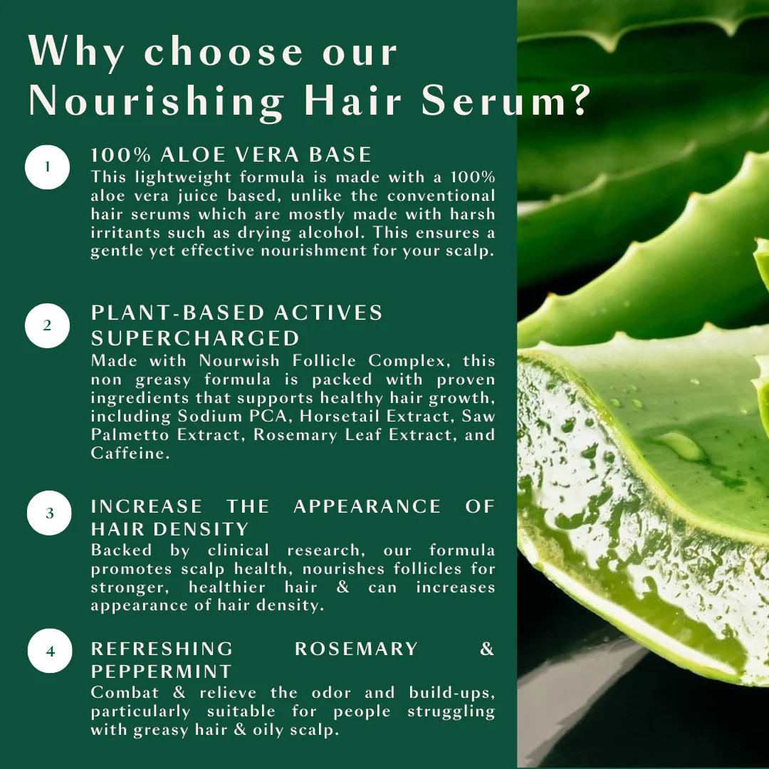 Nourwish Scalp Retreat Nourishing Scalp Serum is a lightweight, aloe-vera-juice–based scalp treatment designed to revive thinning, irritated, or stressed scalps without clogging follicles. Powered by the proprietary Nourwish Follicle Complex (biomimetic peptides + red clover actives) plus amino-acid chains and hyaluronic acid, it supports root strength and helps hair look fuller over time.