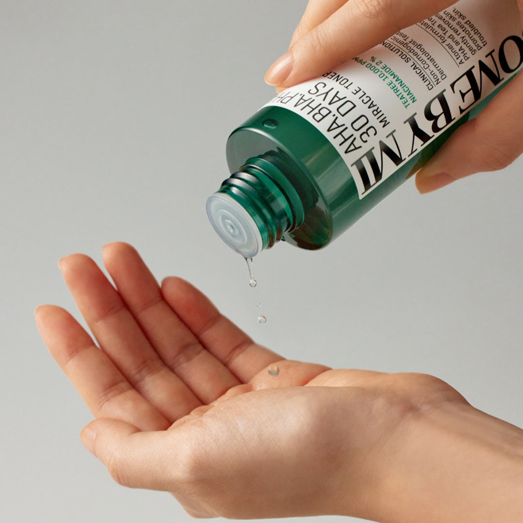 Some By Mi AHA-BHA-PHA 30 Days Miracle Toner 150ml is a multi-functional exfoliating toner designed to clear pores, control oil, and improve overall skin texture. Powered by a triple-acid complex, it combines AHA to remove dead skin cells, BHA to unclog pores and control sebum, and PHA to retain moisture and protect the skin barrier. Enriched with tea tree leaf water and soothing ingredients, it helps calm acne-prone and sensitive skin while reducing redness. Its low pH formula (~5.5) maintains the skin’s natural balance, ensuring gentle yet effective care. The lightweight watery texture absorbs quickly, leaving skin refreshed and prepped for the next skincare steps. Ideal for oily, combination, and acne-prone skin, it promotes clearer, smoother, and healthier-looking skin within 30 days.
